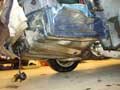 21.1.09 Vaihdoin eteen tukivarren ja reaktiotangon, molemmat olivat aika paljon erinäköisiä kuin pitäisi. Homma lähti käyntiin iskarin alapään irroittamisella jotta tukivarren nivelelle saatiin tilaa tulla pois tilastaan. Iskari oli aika tiukasti jämähtänyt poteroonsa, mutta reilusti Rost offia ja naputtelua niin johan irtosi. Vaihdettavat osat irtosivat ilman ongelmia ja sitten vain uudet paikoilleen.